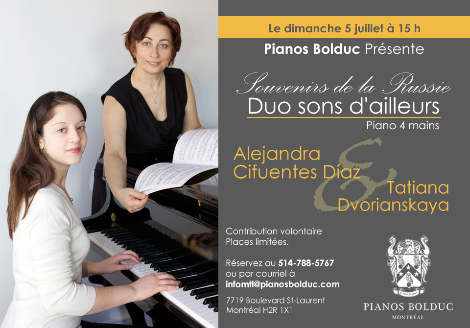 Tatiana Dvorianskaya possède plus de 20 ans d'expérience comme professeure de piano. Après 12 années d'études en musique et performance en Russie, elle s'est diplômée avec spécialisation en piano et accompagnement. En 2010, Tatiana déménage au Canada et continue à enseigner le piano.